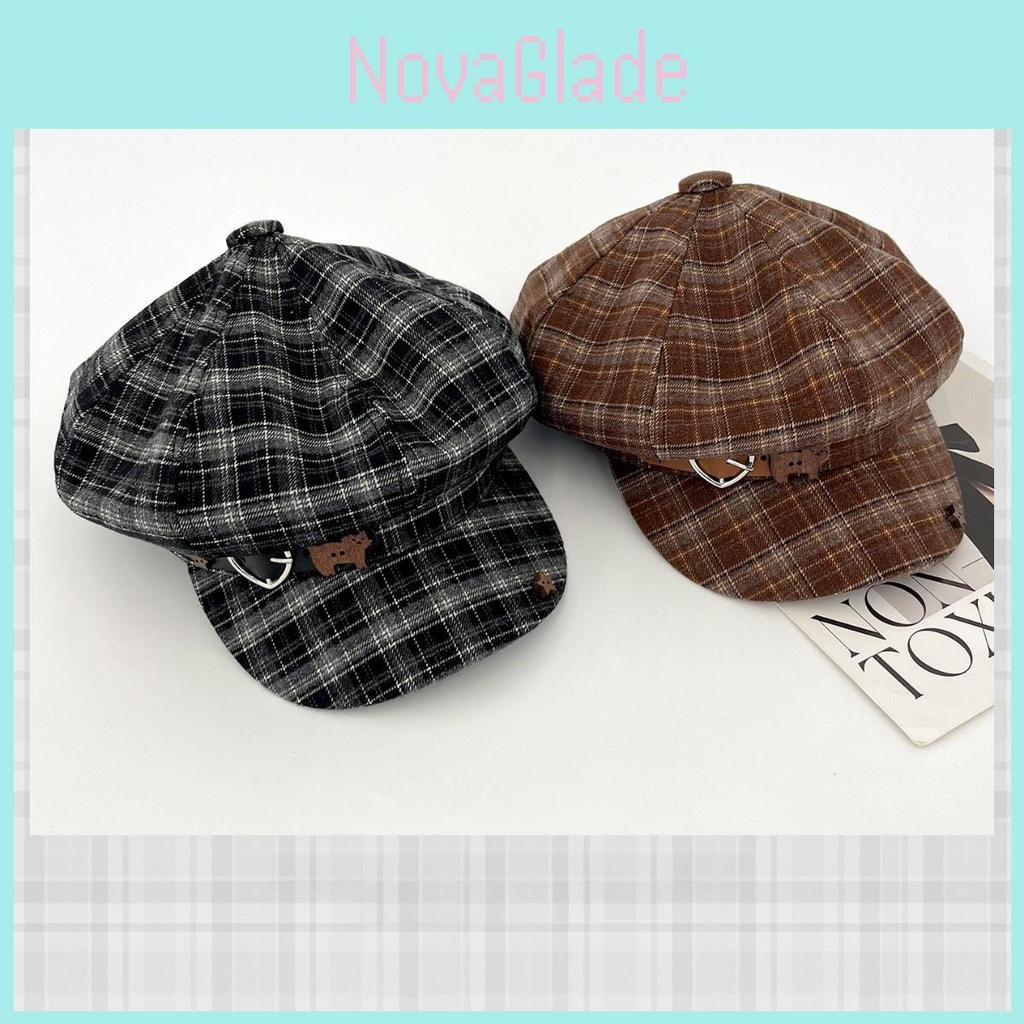 Vintage Καρό Γάτα Καρδιά Πόρπη Ζώνης Καπέλο Newsboy Για Φθινόπωρο Χειμώνα Μόδα