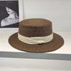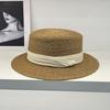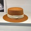 French Te Silk Lafie Grass Flat Top Straw Hat Women's Summer Hepburn Elegant Top Hat, Men's Sun Had Seaside Beach Hat