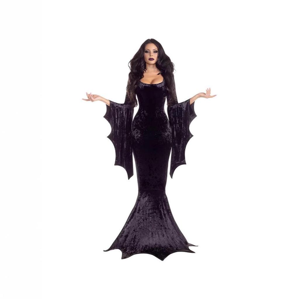 European & American Gothic Witch Vampire Halloween Masquerade Costume - Long Dress with Bat, Witch, Ghost, and Bride Themes for Performance