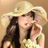Embroidered Flower Flower Straw Hat Boho UV Protection Cap Sweet Women's Sun Hats Travel