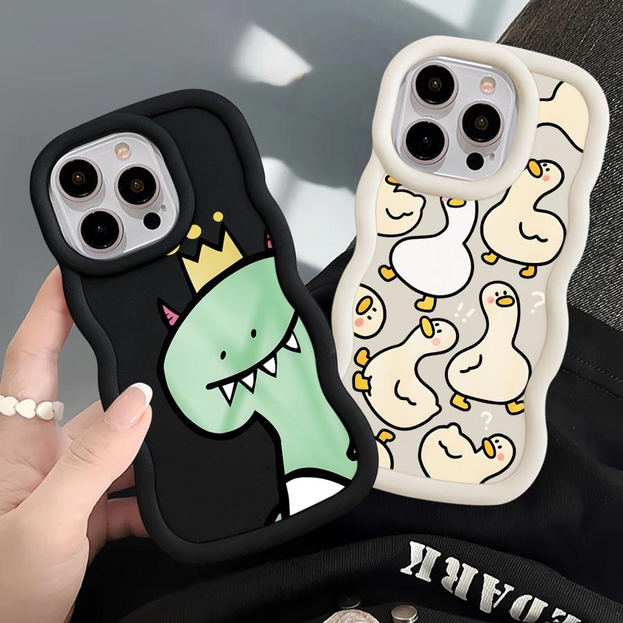Cartoon Dinosaur Goose Soft Phone Cover Case for iPhone 13 17 Air 14 12 8 XR 15 Plus 11 16 Pro Max