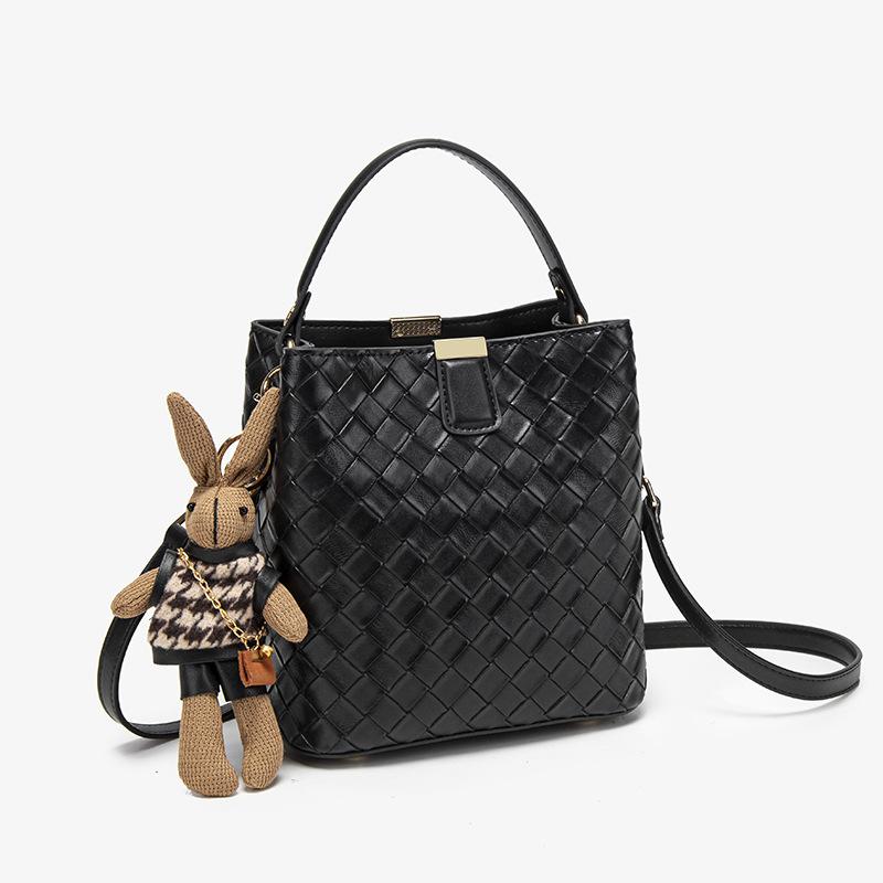 Premium Contrasting Color Bucket Bag Women'S Autumn And Winter Retro Versatile Shoulder Bag Commuter Messenger Bag