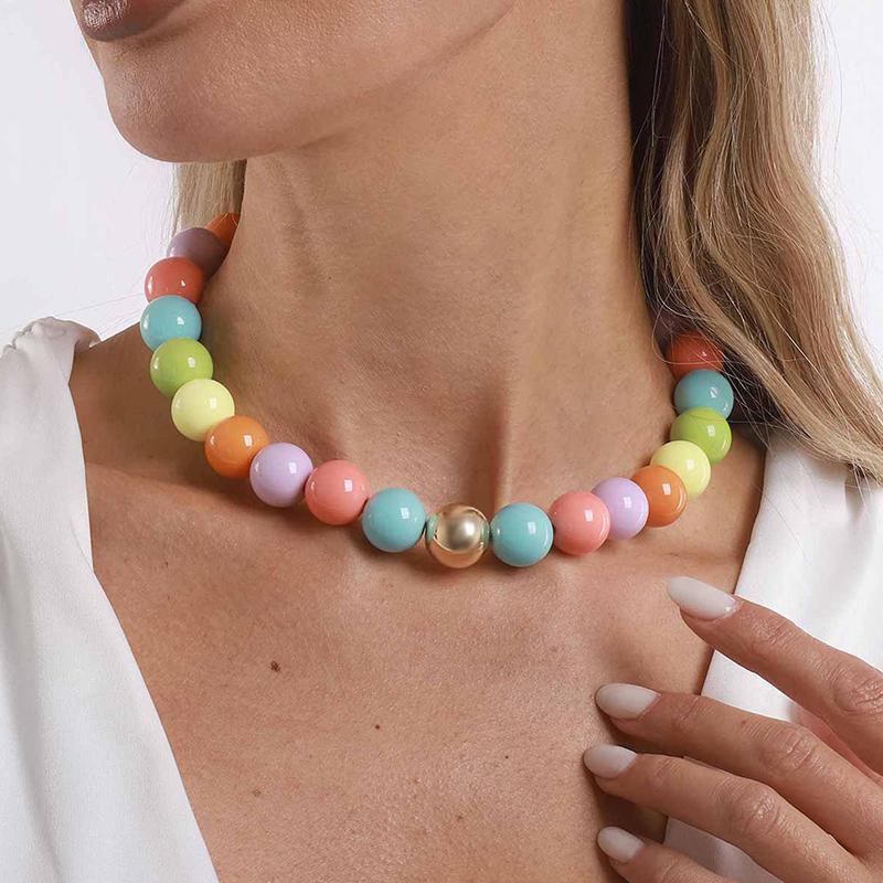 Solid Color Acrylic Bead Necklace Sweet Candy Colored Bead Fashion Cute Bohemian Handmade Colorful Collarbone Chain