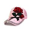 Embroidered rose baseball cap with mesh and diamond inlay, summer women's versatile casual sun protection hat