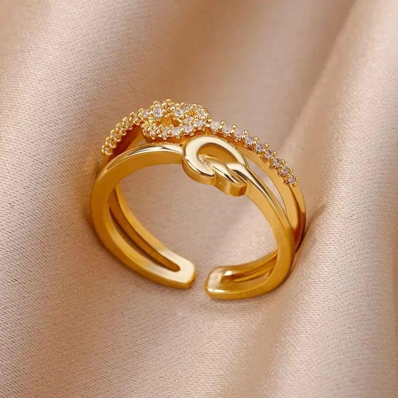 Minimalist Zircon Knot Open Rings For Women Gold Color Stainless Steel Adjustable Finger Rings Retro Jewelry Accessories