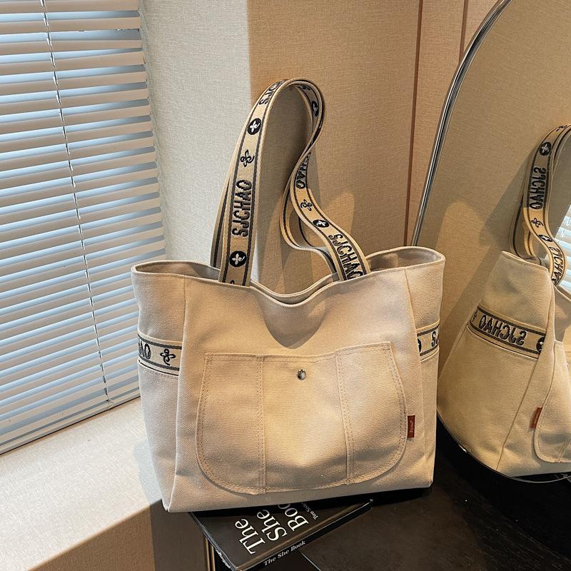 Autumn And Winter Large-Capacity Canvas Bag Women'S Fashion Versatile Commuter Bag Going Out Leisure Shoulder Tote Bag