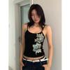 Women's Slim-fitting Black Floral Sleeveless Camisole Top for Early Spring