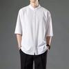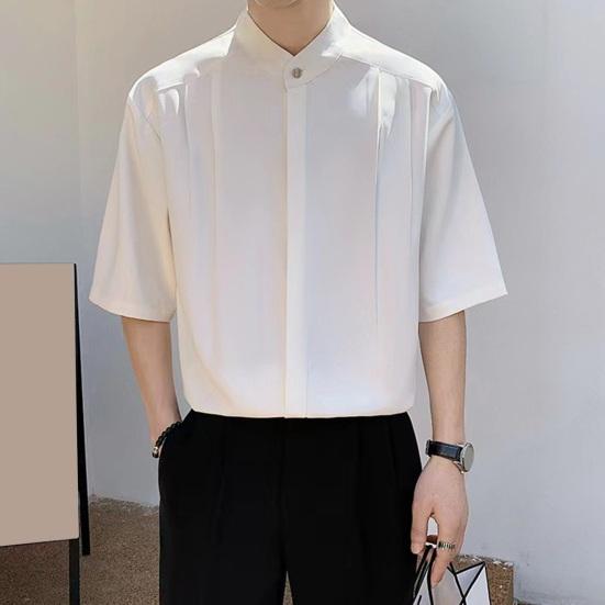 Ανδρικό καλοκαιρινό πουκάμισο πουκάμισο γιακάς Ice μεταξωτό μονόχρωμο πτυχωτό χαλαρή ζακέτα μισό μανίκι μεσαίου μήκους Casual Business Mature Ανδρικό μπλουζάκι γραφείου