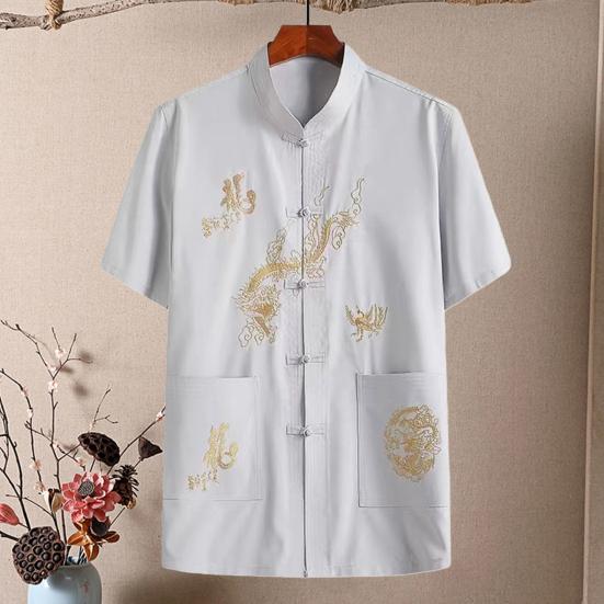 Ανδρικό παραδοσιακό κινέζικο λινό πουκάμισο Tang Σχεδίαση με πιάτο αγκράφα Άνετο κομψό, μαλακό κινέζικο πουκάμισο γιακά