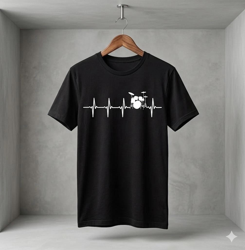 Drum Heartbeat T-Shirt Drummer Percussionist Music Lover Tee - H013