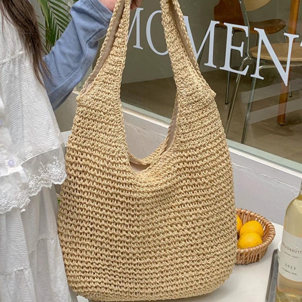 Summer Vacation Style Straw Bag Shoulder Bag Tote Bag Large Capacity Casual Portable Woven Bag