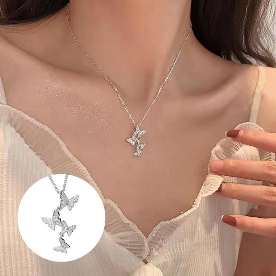Butterfly Pendant Necklace Women Rhinestone Butterflies Necklace Elegant Clavicle Chain Birthday Anniversary Gift for Her
