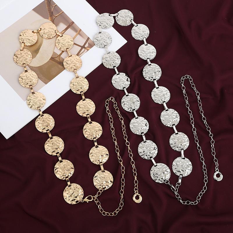 Metal Gold/Silver Chain Belt Geometry Round Wafer Adjustable Women Waist Chain Dress Shirt Decoration Accessories