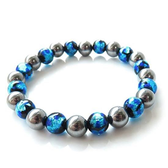 Terahertz Stone x Luminous Firefly Glass Sky Blue Bracelet 8mm Glows in the Dark Power Stone Inner Diameter [GOLD STONE] Approx. 19.5cm