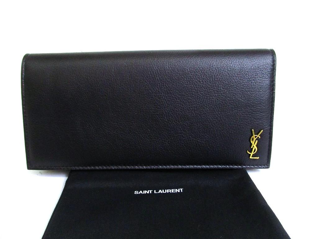 Authentic Saint Laurent YSL Tiny Monogram Black Grain Leather Flap Long Wallet #b150 Seller refurbished