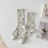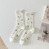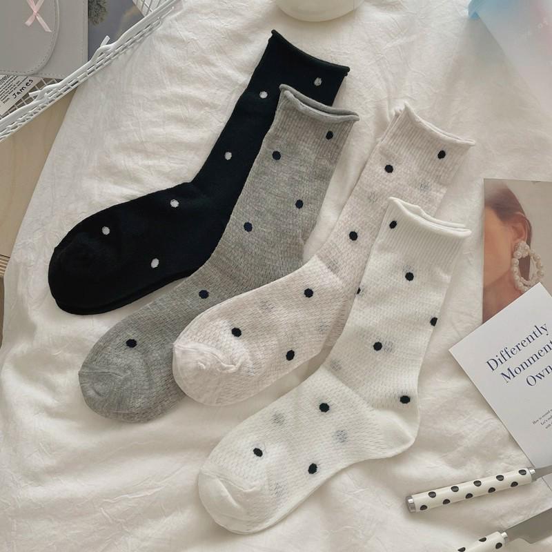 Women's Polka Dot Mid-Calf Cotton Socks with Rolled Cuffs - Retro Mesh, Breathable, Slouchy, Versatile, Casual Style