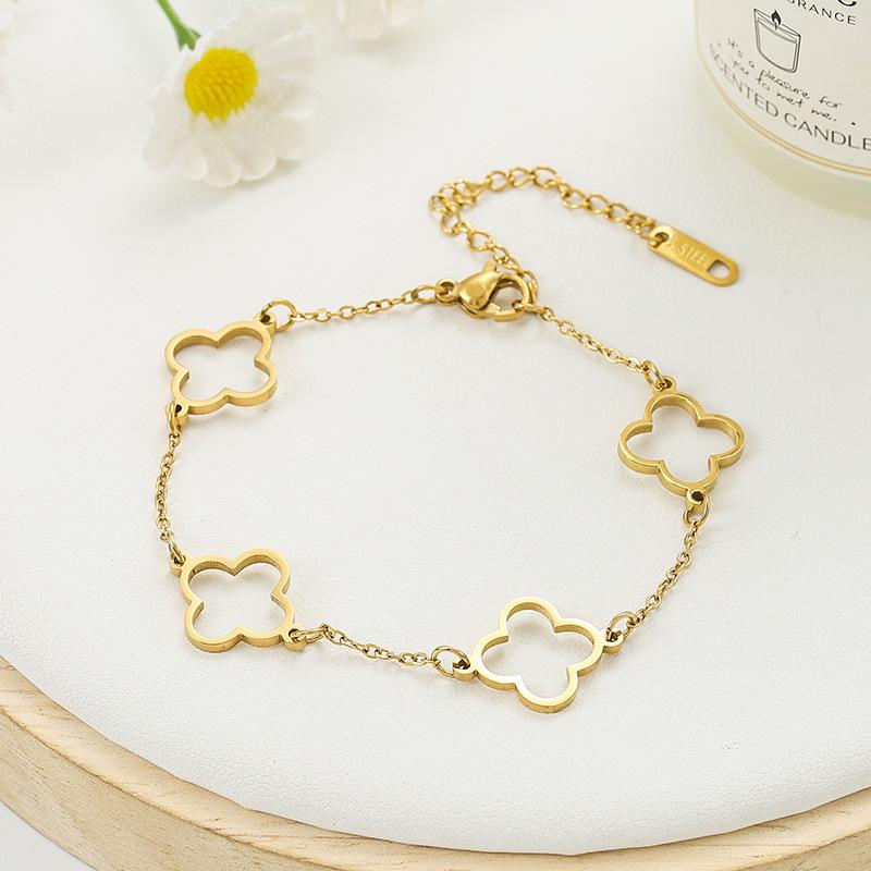 18K Gold Plated Stainless Steel Hollow Four-Leaf Clover Women's Bracelet