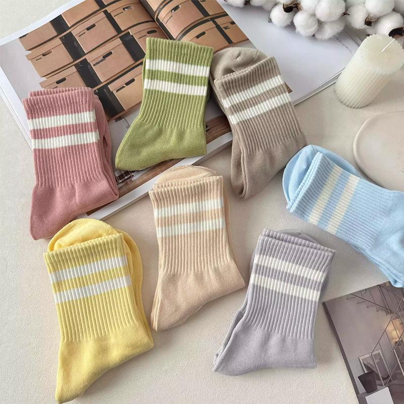 Candy-Colored Women's Odor-Resistant Antibacterial Striped Cotton Sports Socks