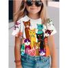 Three Little Flower Cats 3D Digital Print Round Neck Short Sleeve T-Shirt for Boys and Girls, Breathable and Comfortable M029