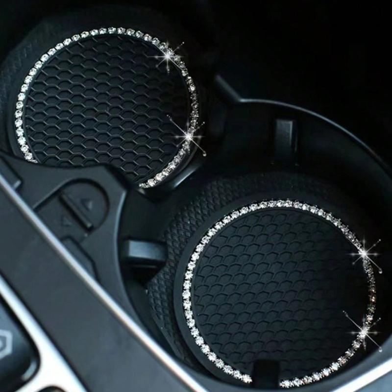 2pcs-Rhinestone Decor Anti- Car Coaster