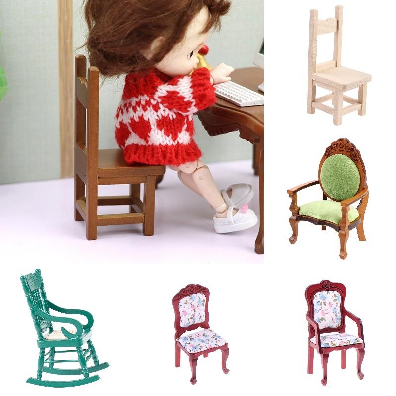 1:12 Dollhouse Miniature Wooden Chair Mini Armchair Rocking Chair High Chair Model Furniture Home Garden Decor Accessories Toys