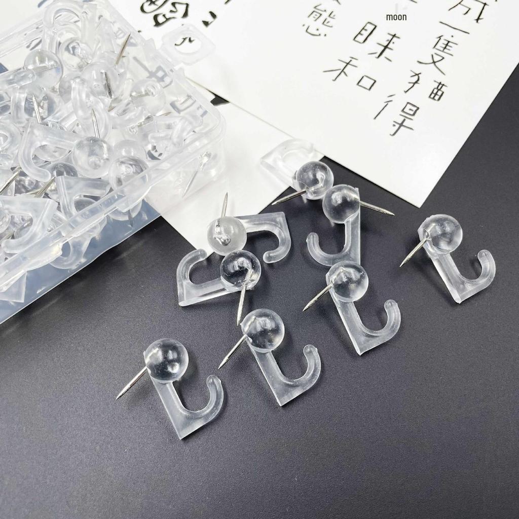 50-100 Pack Black & Transparent Thumbtack Hooks - Wall Nails for Document Hanging