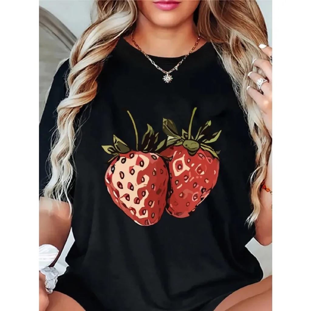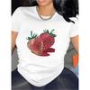 Ladies' Fashionable, Casual, Sweet and Delicious Strawberry Fruit Cuisine Short Sleeved Soft Printed Casual Loose Women T-shirt