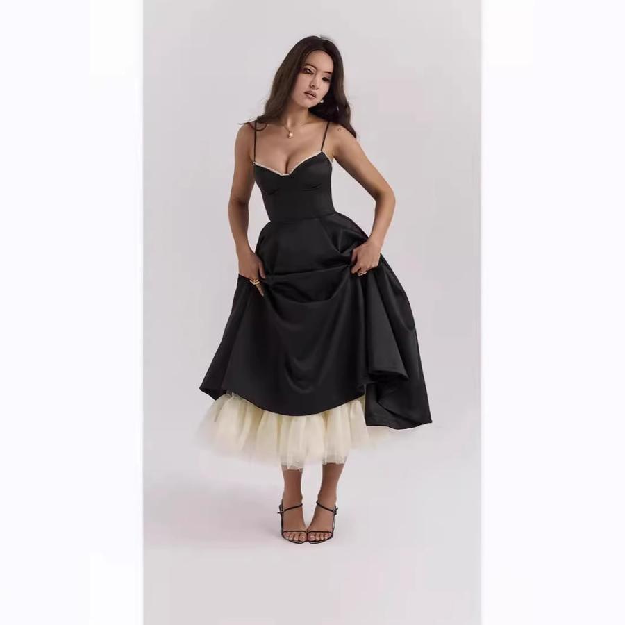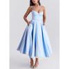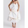Sexy Women's Clothing New Style Strappy V-Neck Sleeveless Dress with Ruffles and Long Skirt