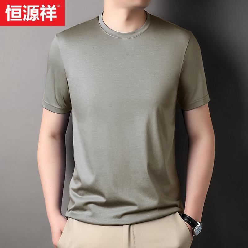 Hengyuanxiang Men's Ice-Feel Mulberry Silk Blend Round Neck T-Shirt