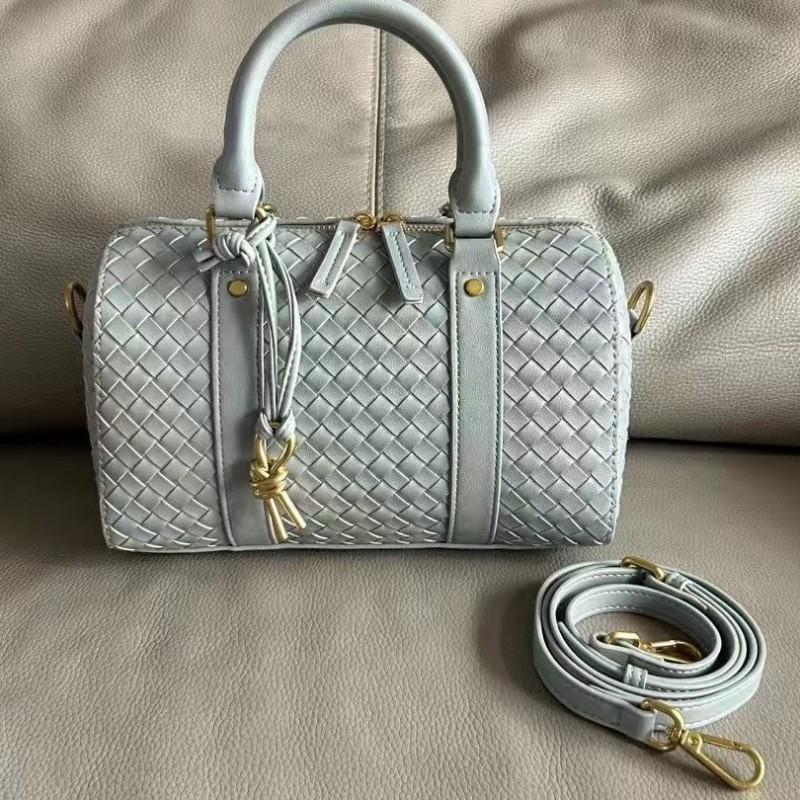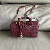 2024 Business Commuter All-matching Diamond-grid Cowhide Knitted Cross-shoulder Pillow-carrying Handbag
