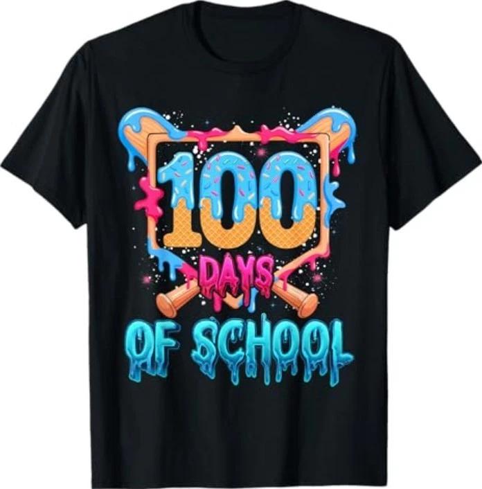 Happy 100 Days of School Baseball Drip 100th Day of School T-Shirt