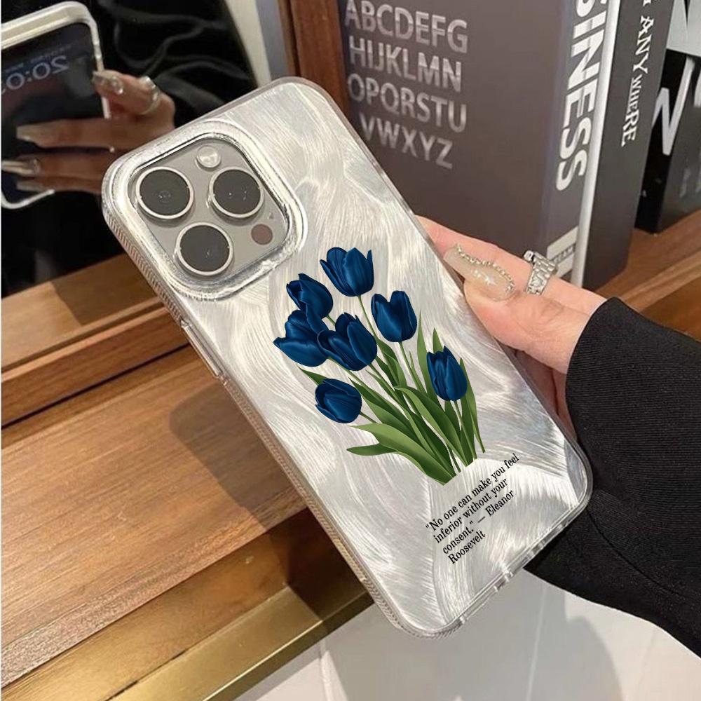 Blue Tulip Cute Case For iPhone 16 17 15 Pro Max Cases iPhone 17 11 12 13 ProMax 14 15 16 Plus 7 8 16E XS XR Shockproof Cover