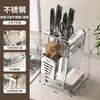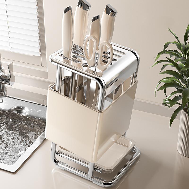 Knife Holder and Utensil Holder Stainless-Steel,Knife Storage with Slots for Scissors,Sharpening Rod,Stable Knife Organizer