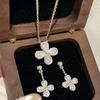 Luxury French Retro Clover Necklace with Diamond Flower Earrings Women Jewelry Set