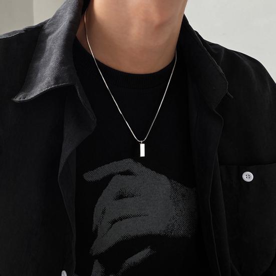 Bar Pendant Necklace for Men Geometric Stick Bar Pendant Chain Necklace Simple Jewelry Gift for Boyfriend Husband