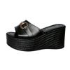 Pegged Platform Women's Open-toe Thick-soled Wedge Slip-on Large Size Open-toe Slip-on Shoes