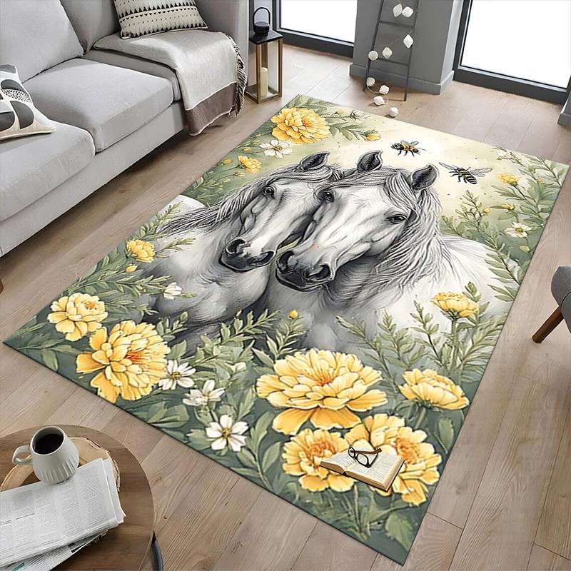 1PC Horses Flowers Non-Slip Floor Carpet Compatible for Office&Living Room&Dining room - Flat-Weave Machine- Soft & Pattern-E240