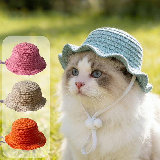 This adjustable pet hat features a drawstring buckle design, allowing you to easily customize the fit for cats and dogs of various sizes, ensuring it stays secure without causing discomfort. Crafted with natural straw weaving using handmade techniques, it is odorless, skin-friendly, breathable, and prevents sweating, providing maximum comfort for your pet. The retro pastoral style with a wavy brim adds a charming touch, available in multiple colors to suit your pet's personality.