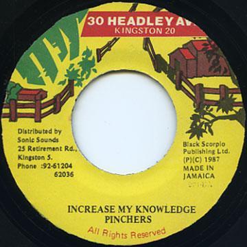 7inch Record PINCHERS Increase My Knowledge NONE 30 Headley Ave. 1987 Jamaica Reggae Ska Dub Used