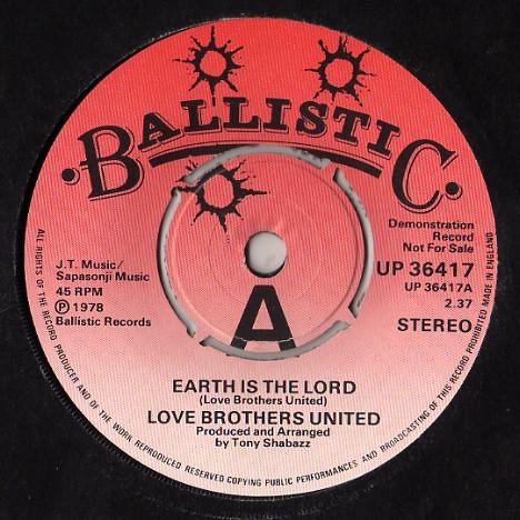 7inch Record LOVE BROTHERS UNITED Earth Is The Lord UP36417PROMO Ballistic Recor 1978 UK Reggae Ska Dub Used