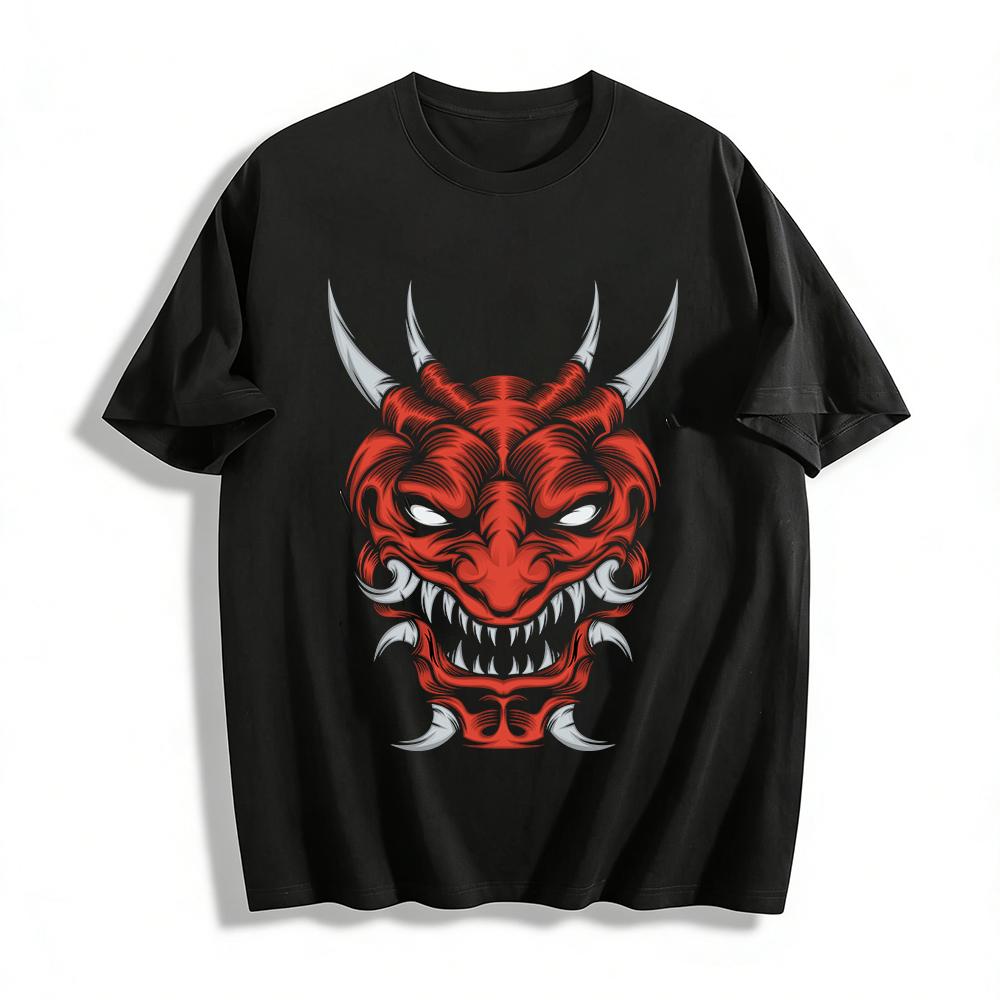 Japanese Red Oni Hannya Print Cool Street Style Casual Top Pure cotton T-shirt