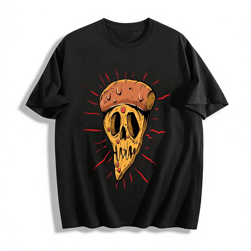 Skull Pizza Print Trendy Street Style Casual Short Sleeve T-Shirt Pure cotton T-shirt