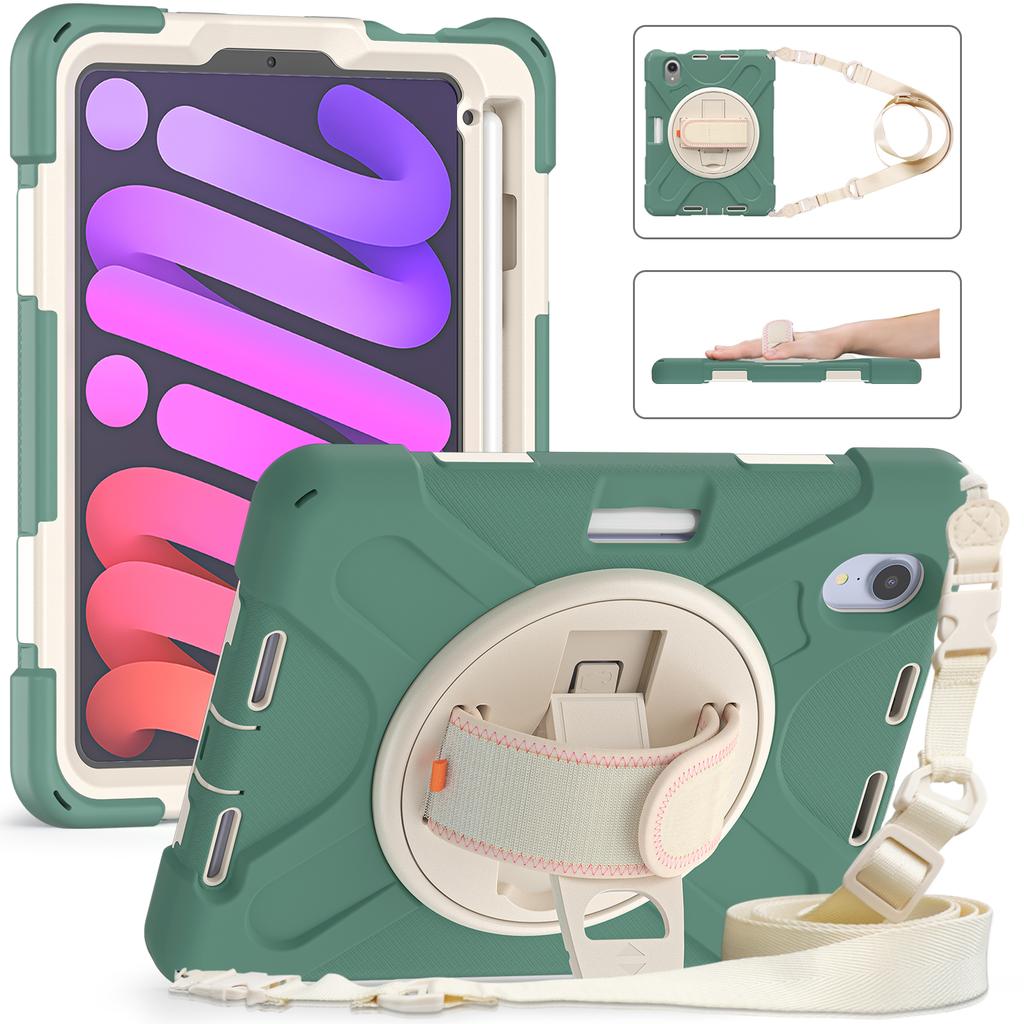 Heavy Duty Case Universal For iPad Mini 7 A17 Pro 2024 2021 8.3" Rotatable Stand Hybrid Cover With Hand Shoulder Strap, Pen Slot