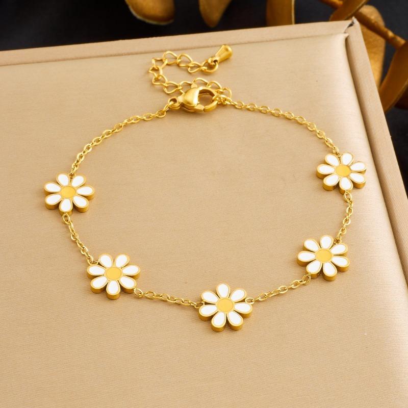 Gold Daisy Flower Enamel Bracelet For Women Dainty Jewelry