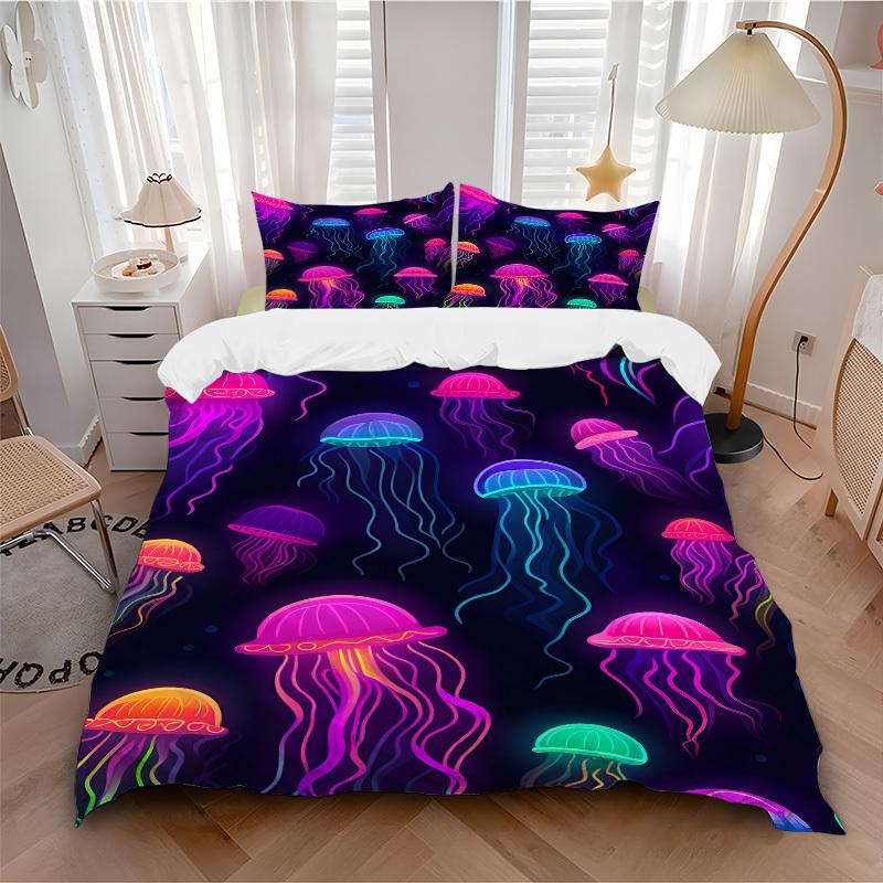 3pcs Jellyfish, Neon Print Bedding Set, Ideal for Home Use, Suitable for Bedroom Decor (1*Duvet Cover + 1/2*Pillowcases, No Core) yy250821180