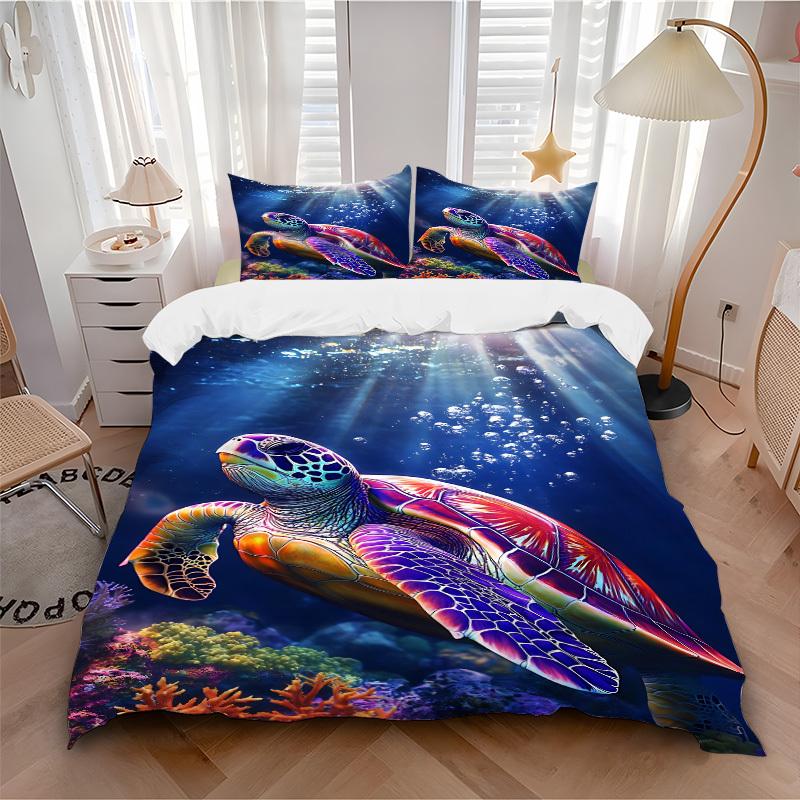 3pcs Sea Turtle Print Duvet Cover Set, Cover For Bedroom Guest Room (1 Duvet Cover + 2 Pillowcase, Without Quilt), yy250922100