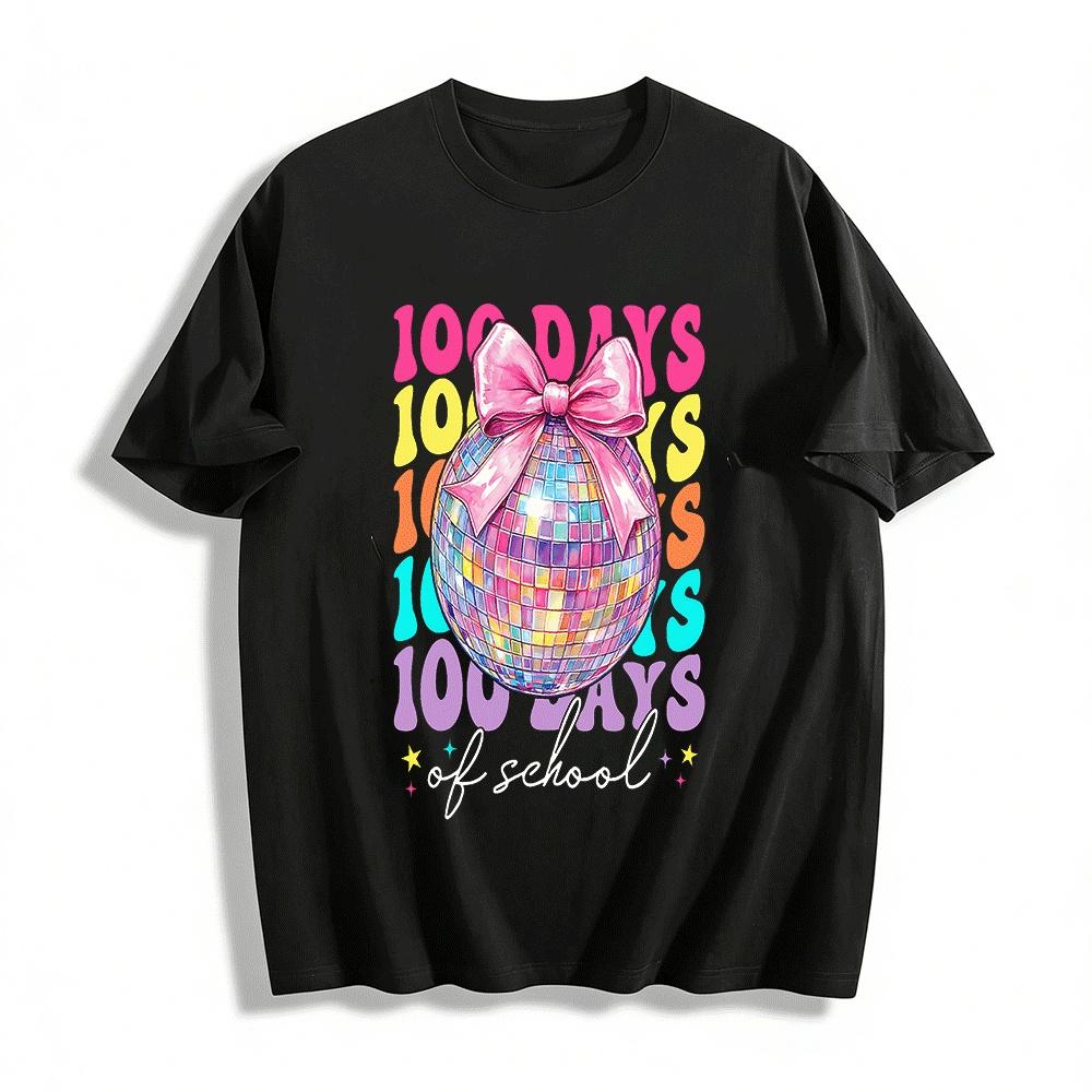100 Days of School Colorful Disco Bow Celebration Top Pure cotton T-shirt