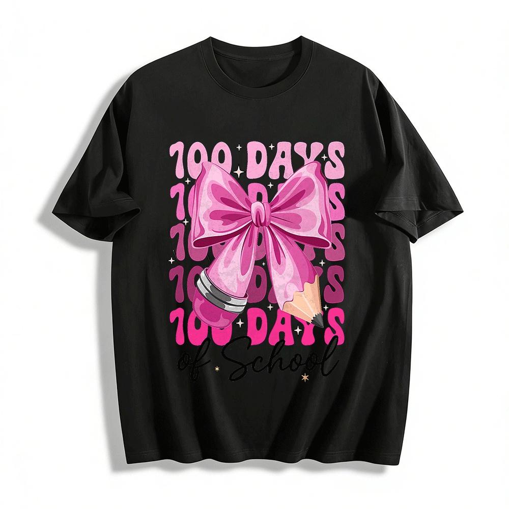 100 Days of School Pink Bow Pencil Girls' Fun School Top Pure cotton T-shirt