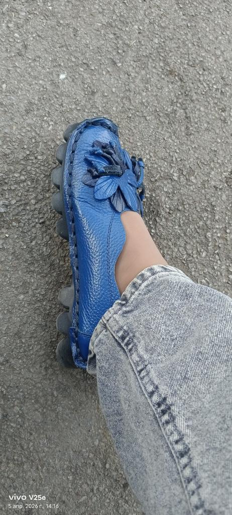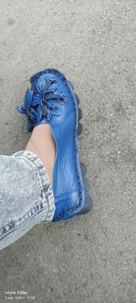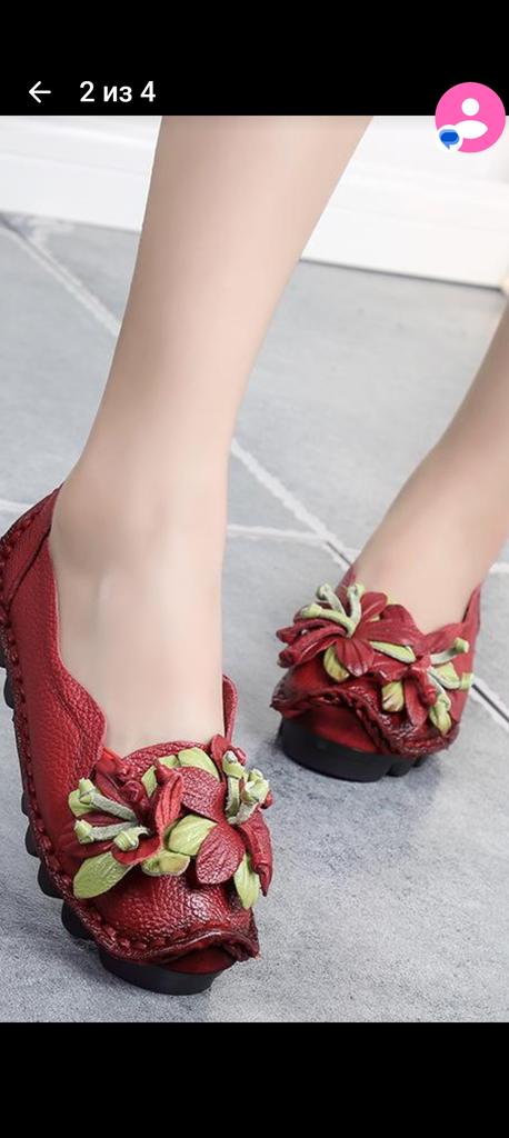 Awesome slippers! They fit true to size for a narrow foot. It's really leather. Soft, thick, well-made. Inside - suede. Didn't tear.. The sole is rubber, cast, soft, adapts to the foot, slightly springy, the heels have not sagged in 2 months. They are not hot at +25 and not cold at +10. I wear them with footstools. My feet just relax in them, like in house slippers.. You won't go unnoticed. I took the yellow ones. The color absolutely matches the product card.