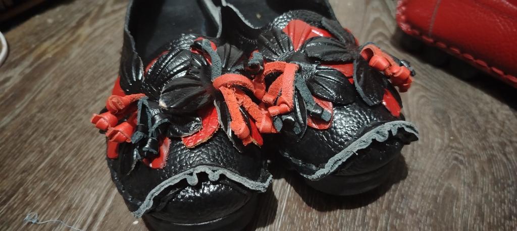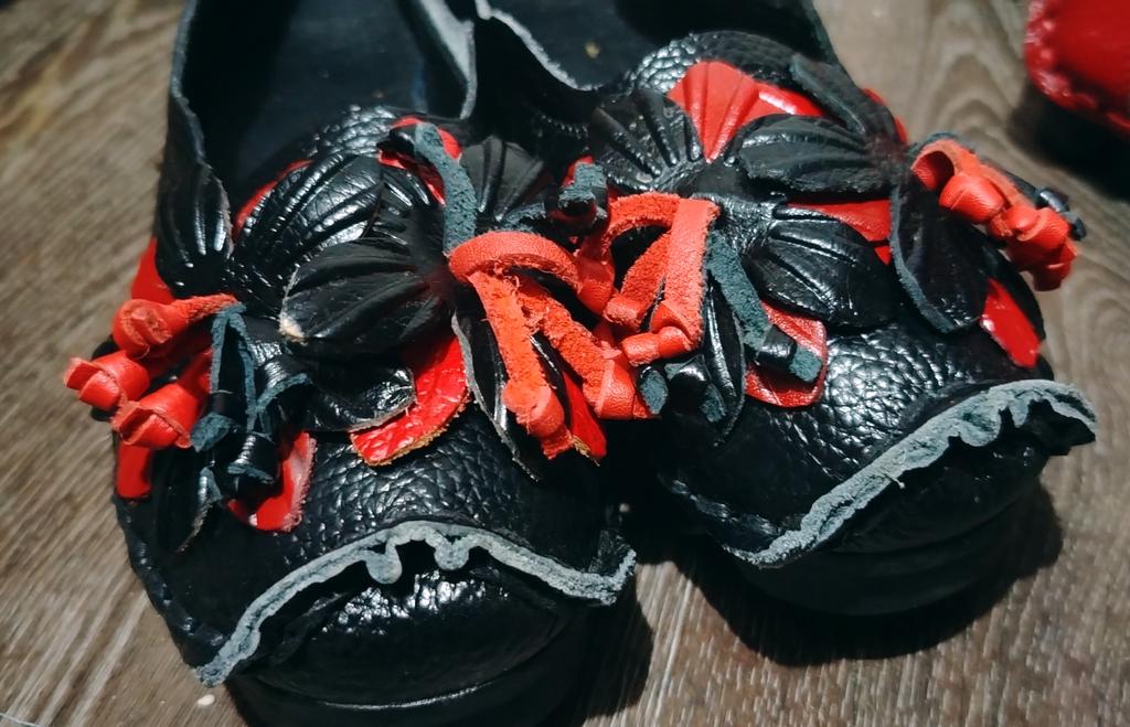 The shoelaces are all crumpled, one flower doesn't stay on, made sloppily, the sole is slightly different, no inscription inside, clearly a different manufacturer